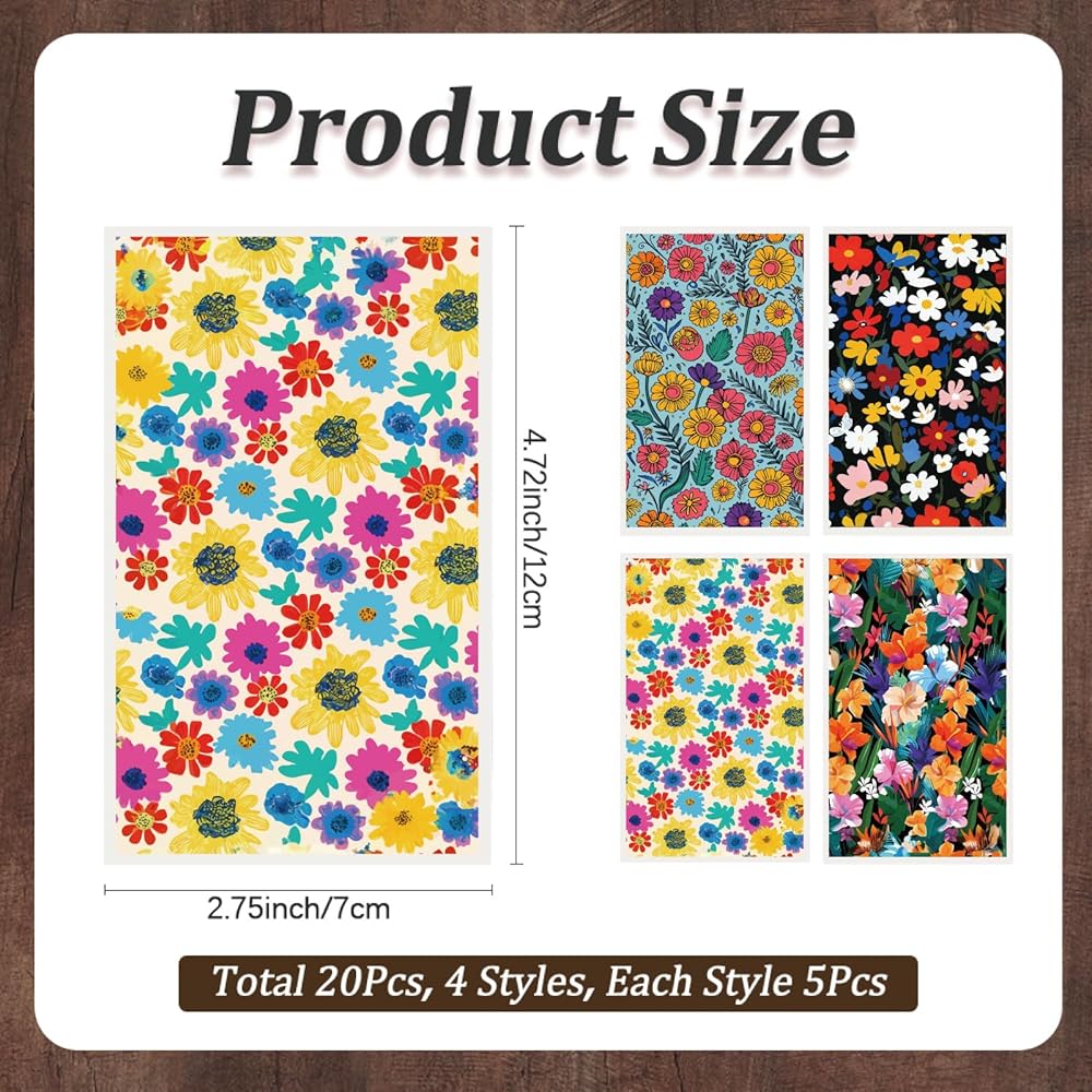 CRASPIRE 20Pcs 4 Styles Polymer Clay Transfer Paper Small Flowers Vintage Floral Underglaze Ceramics Texture Water Transfer Sheets 4.7x2.8In Porcelain Decals for Jewelry Making Earrings DIY Art Crafts
