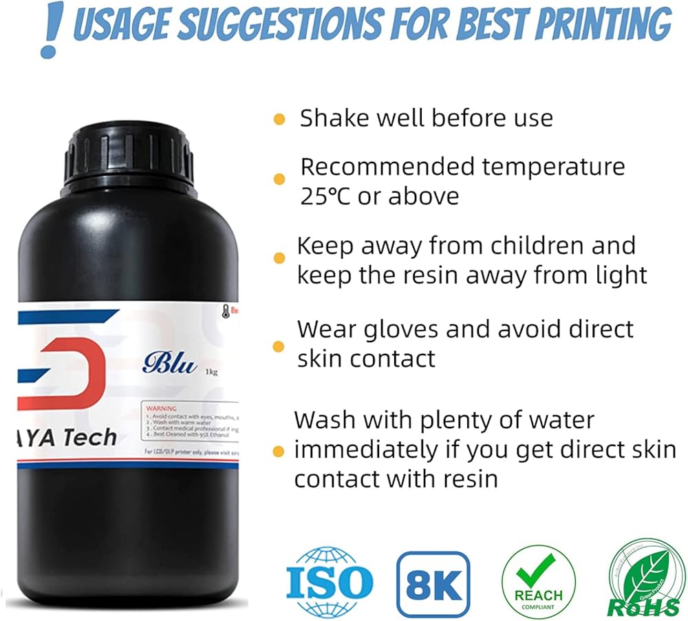 Precision Printing - With excellent accuracy, this tough resin captures fine details and boasts good fluidity for fast printing and curing. Note: Due to its high viscosity (1200cps), it's recommended to print at 25°C.