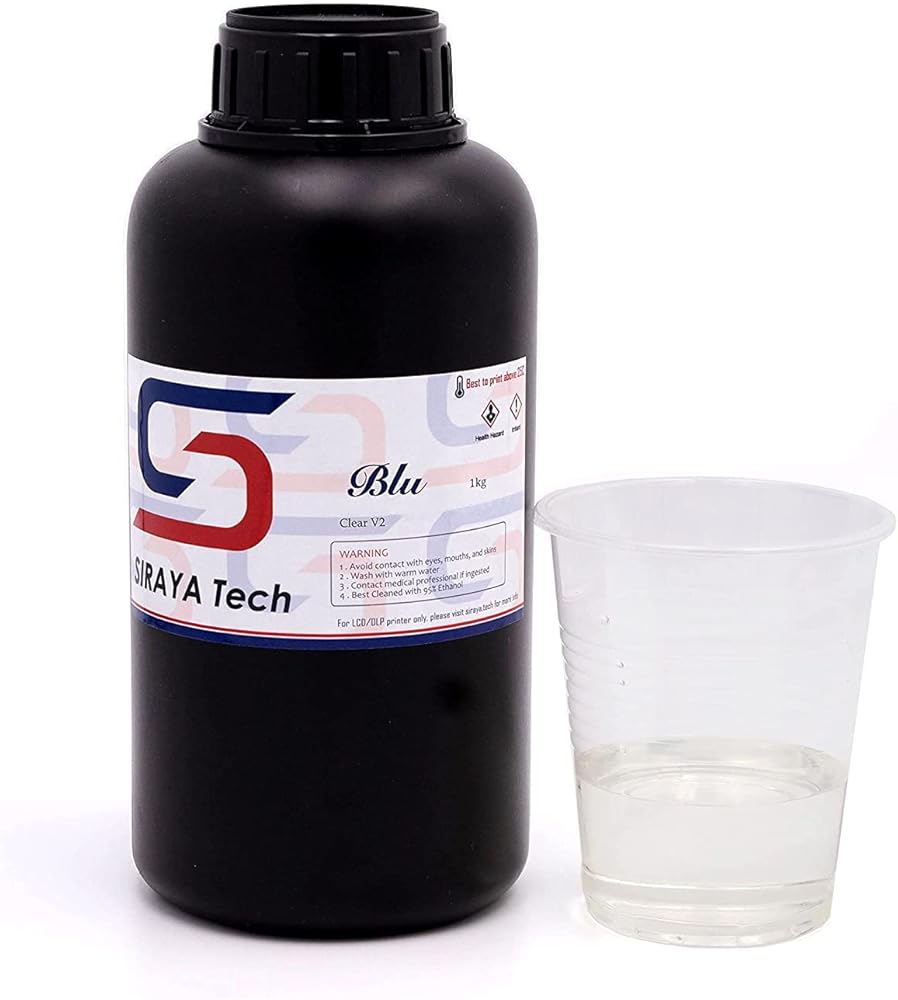 Siraya Tech Blu 3D Printer Tough Resin with High Toughness Resolution Strong and Precise 3D Printing 405nm UV-Curing Rapid Resin for LCD DLP 8K 3D Printer (1kg, Clear V2)