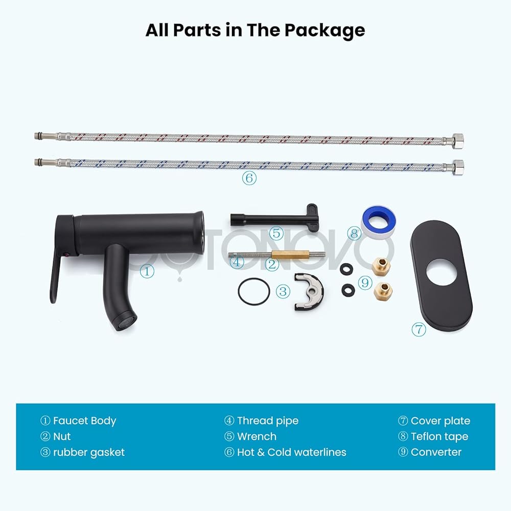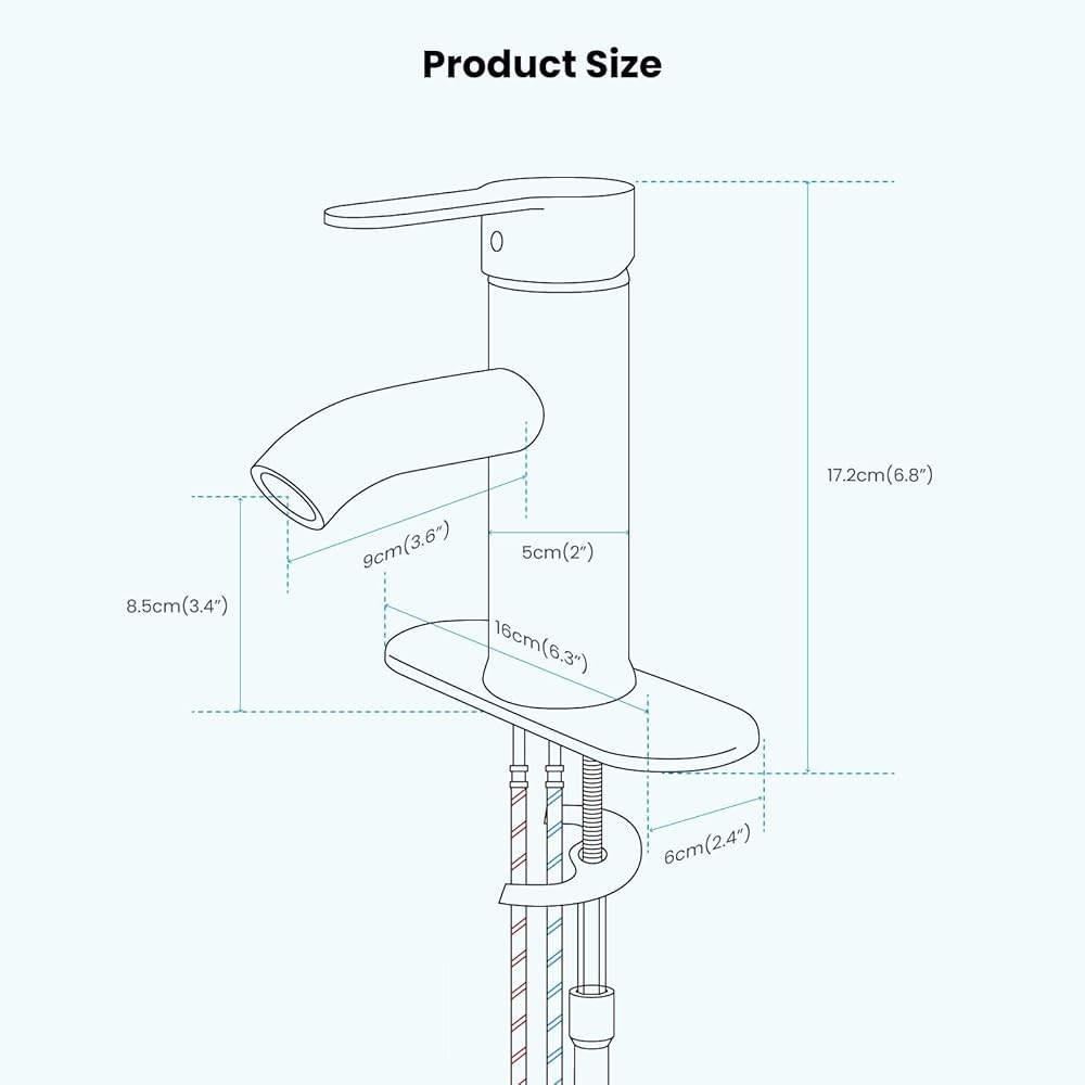【Package Content】:Bathroom sink faucet, 23.6 inch (60 cm) 3/8" long Hot & Cold Water Hoses,decorative cover,Come with all install hardware.