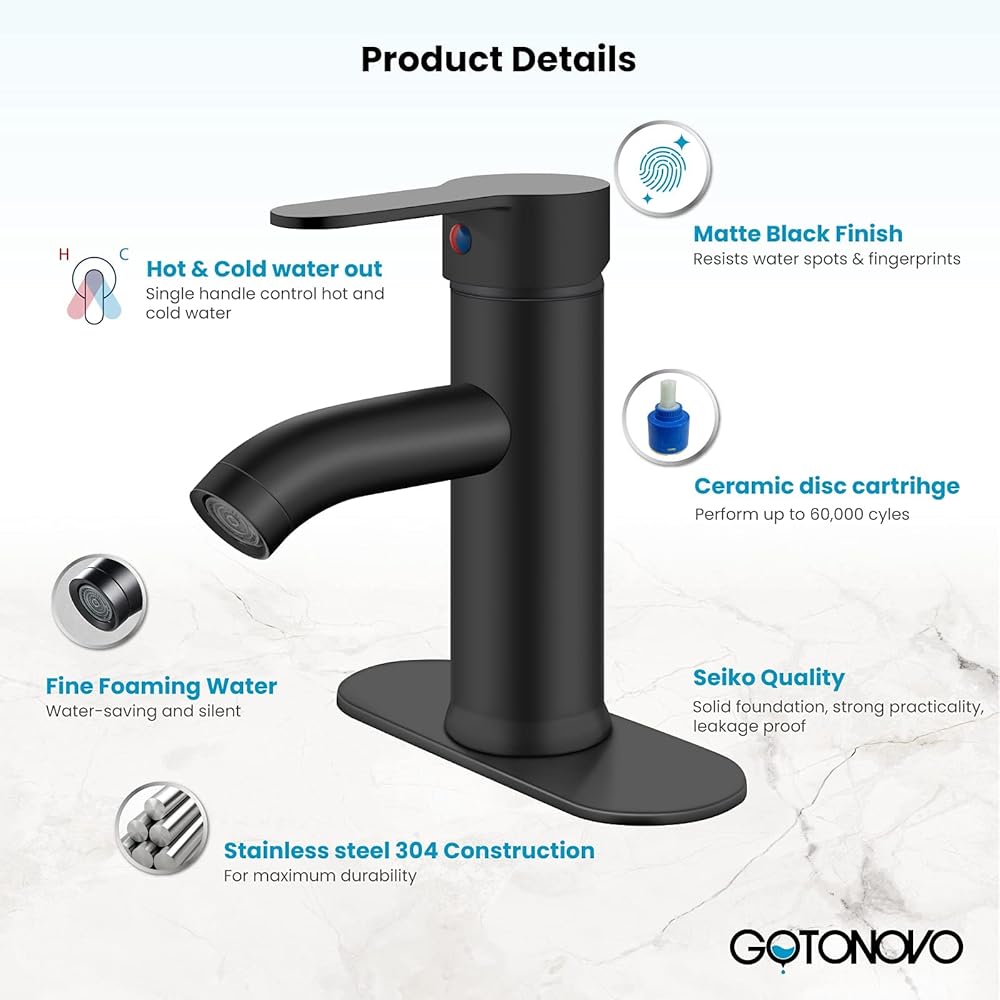 【Design】:Single lever handle control hold and cold water, easy adjust water temperature. Filtered bubbler on spout can filter dirt in water and prevent water splash out.