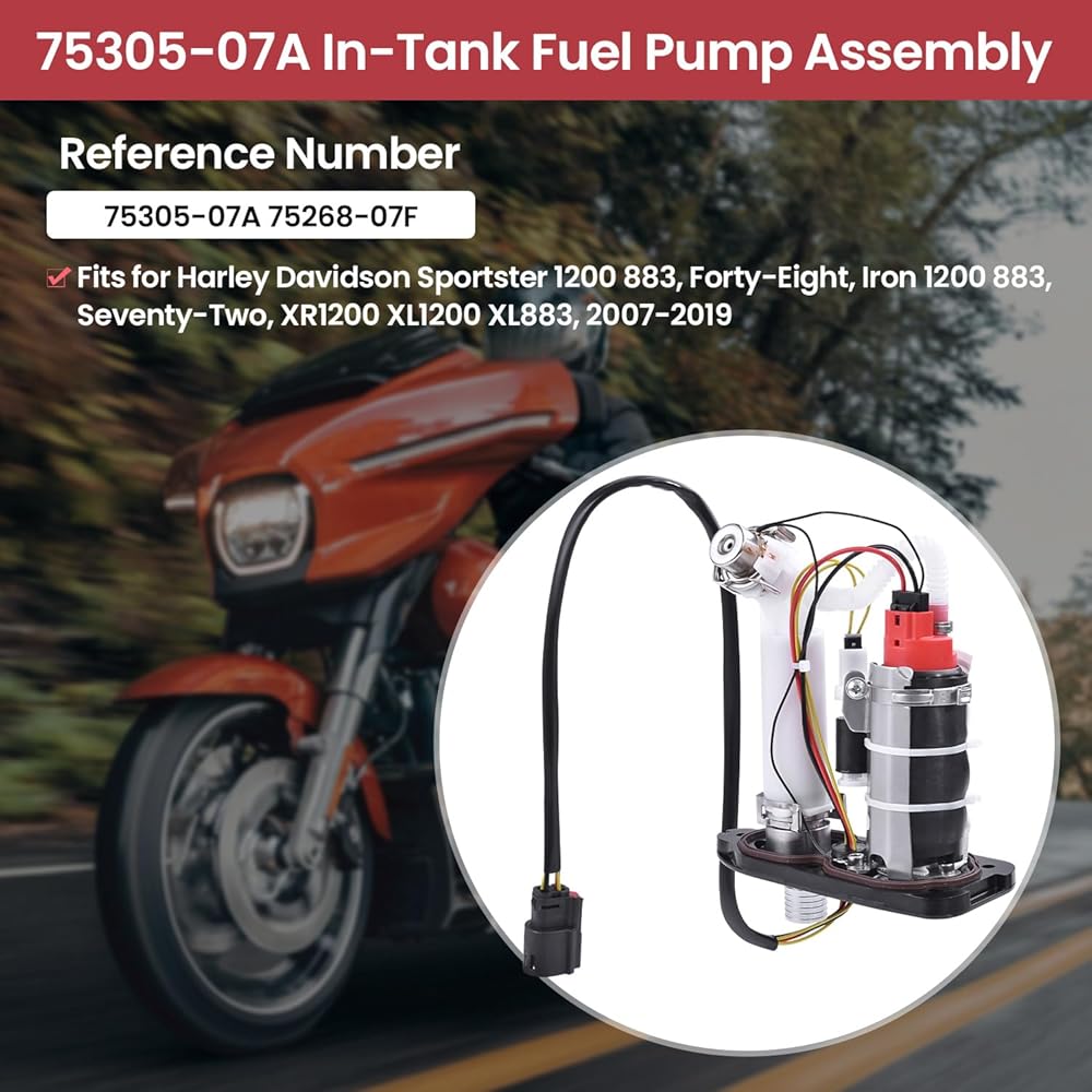 【Vehicle Fitment】This In-Tank Fuel Pump Assembly fits for Harley Davidson Sportster 1200, fits for Sportster 883, fits for Forty-Eight, fits for Iron 1200, fits for Iron 883, fits for Seventy-Two, fits for Xr1200 Xl1200 Xl883, fits for Model Years 2007, 2008, 2009, 2010, 2011, 2012, 2013, 2014, 2015, 2016, 2017, 2018, 2019.