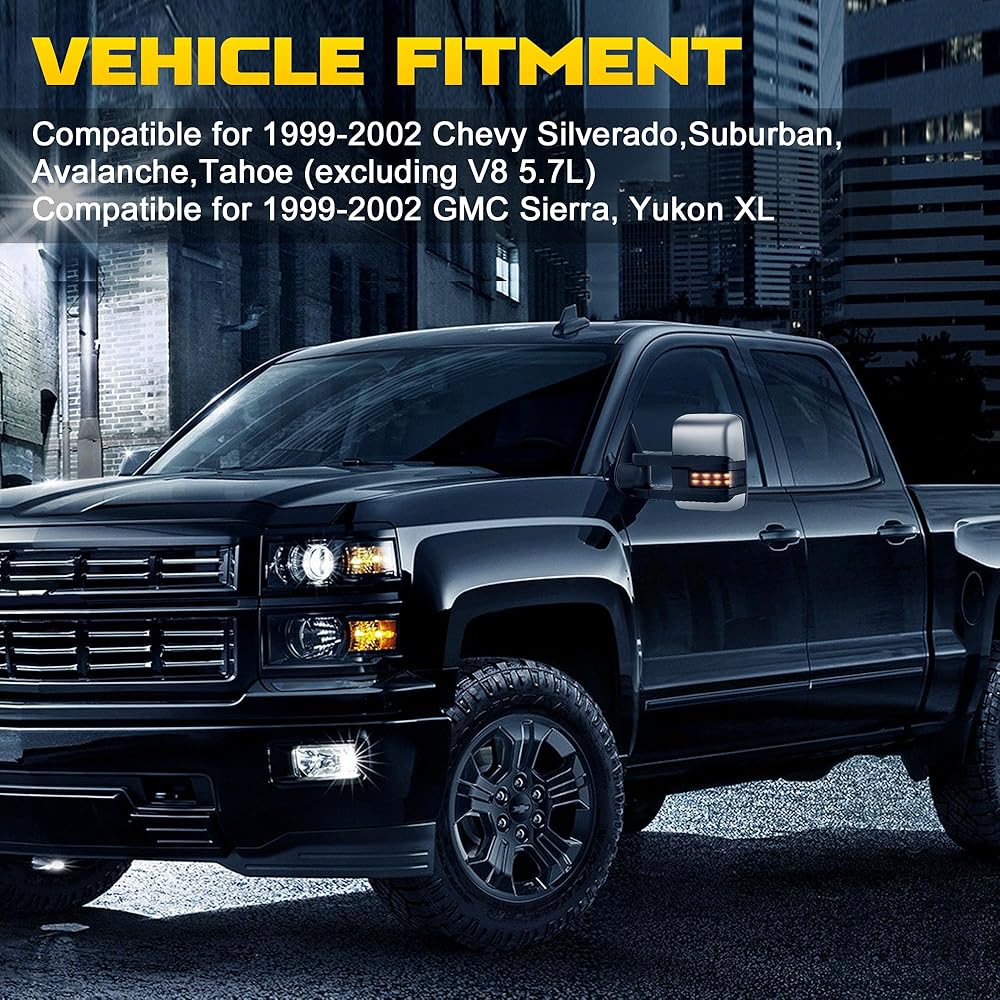 Tow Mirrors for 1999-2002 Chevrolet Silverado GMC Sierra 1500/2500/3500 Side Mirror with Power Heated Sequential Turn Signal Dotted white running lights Black Pair Set