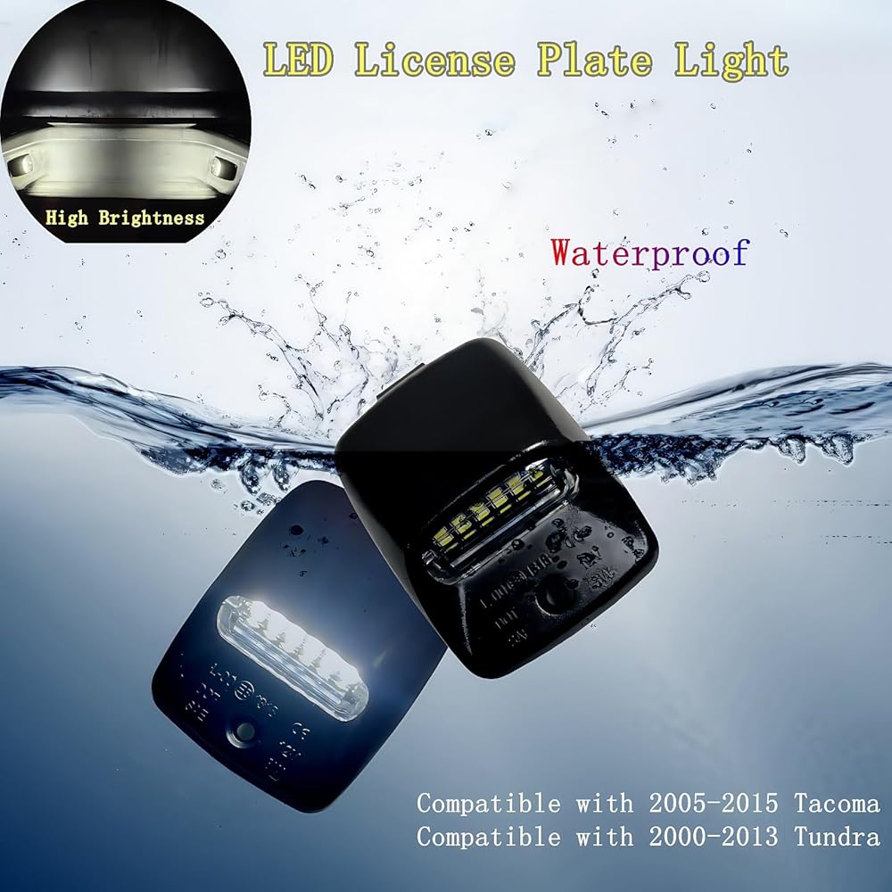 LED License Plate Light Replacement Compatible with Toyota Tacoma 2005 to 2015, Tundra 2000 to 2013, 6000K White, Rear Tag Lamps Assembly,2nd Gen Tacoma Accessories,Pack of 2