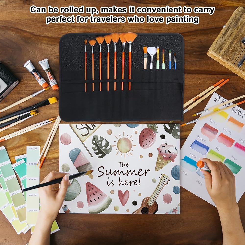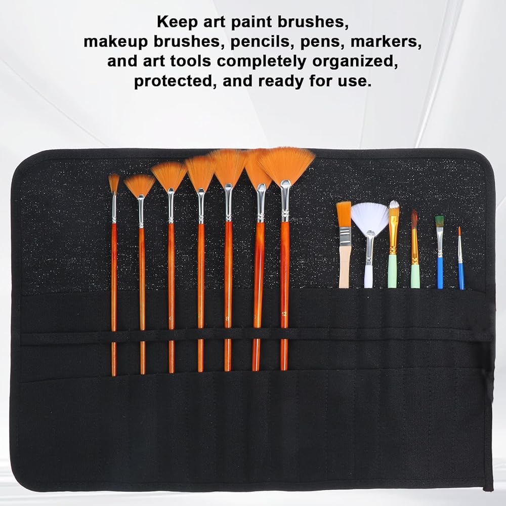 【Space-Saving, Convenient Portability】The paint brush storage features a compact scroll design for easy portability. Perfect for busy artists, it fits easily into a backpack or handbag, making it an ideal travel companion for art supplies and makeup brushes