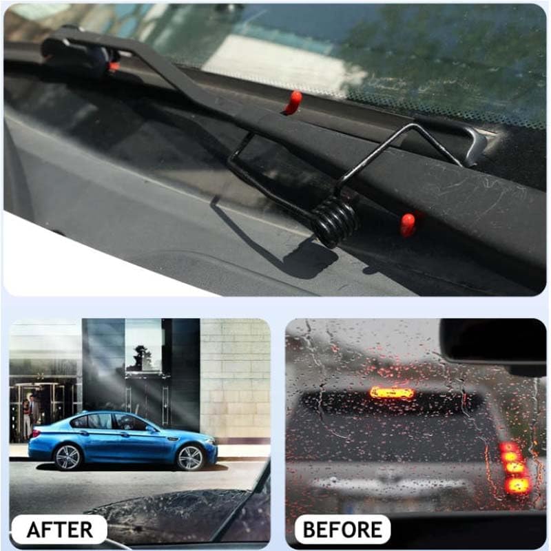 Installing wiper assist spring is effortless. Just lift the wiper arm, slide the auxiliary spring into place, and then secure it with the included fastening clip