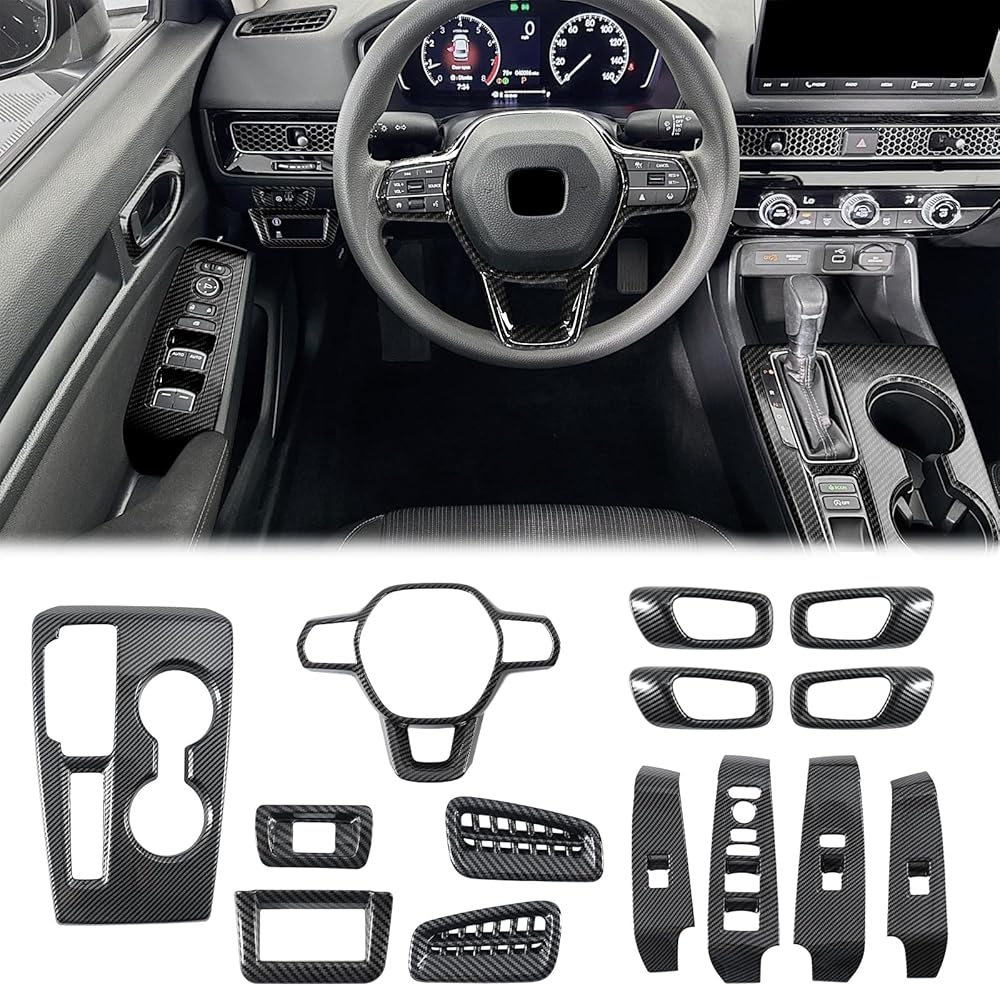 【Applicable Models】These carbon fiber interior decor kit are specifically designed compatible with 11th Gen Honda Civic, produced between 2022 and 2025. Please confirm your car model before purchasing.