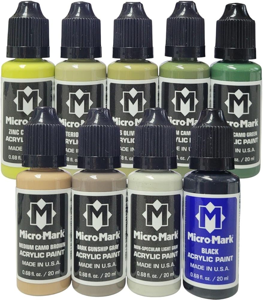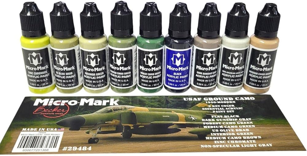 Micro-Mark USAF Ground Camo Acrylic Paint Set – 9 Colors, 0.68 fl. oz Bottles, 1950-Modern Military Vehicle Colors, Made in USA for Model Aircraft, Vehicles & Dioramas