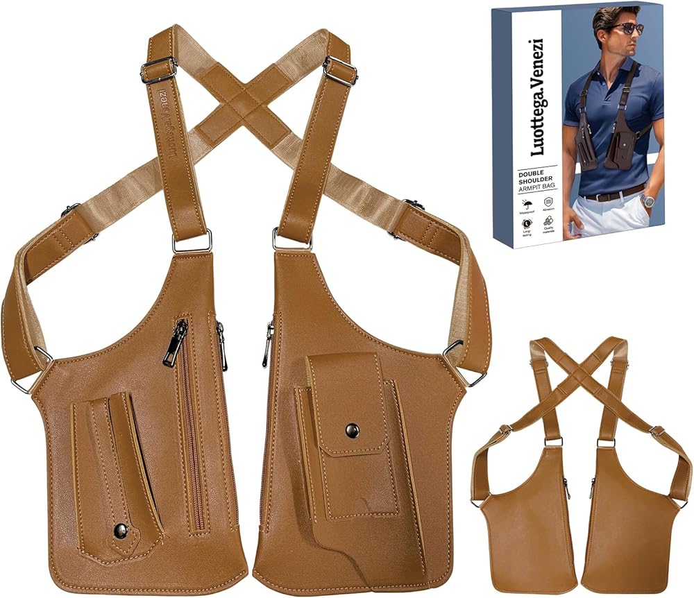 【DURABLE MATERIAL】 Double Shoulder Strap Multi-pocket Outdoor Anti-Theft Tactical Bag, Crafted from high-quality, water-resistant PU leather, this bag is built to withstand rugged conditions and protect your belongings from the elements, ensuring long-lasting durability