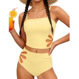 🎁【Package Includes】You will receive 1× solid cut out swimsuit top + 1× high waisted bottom. Machine wash cold, do not bleach. Pair with a sun hat, sunglasses, or a cover-up for the perfect summer look—stylish and practical!