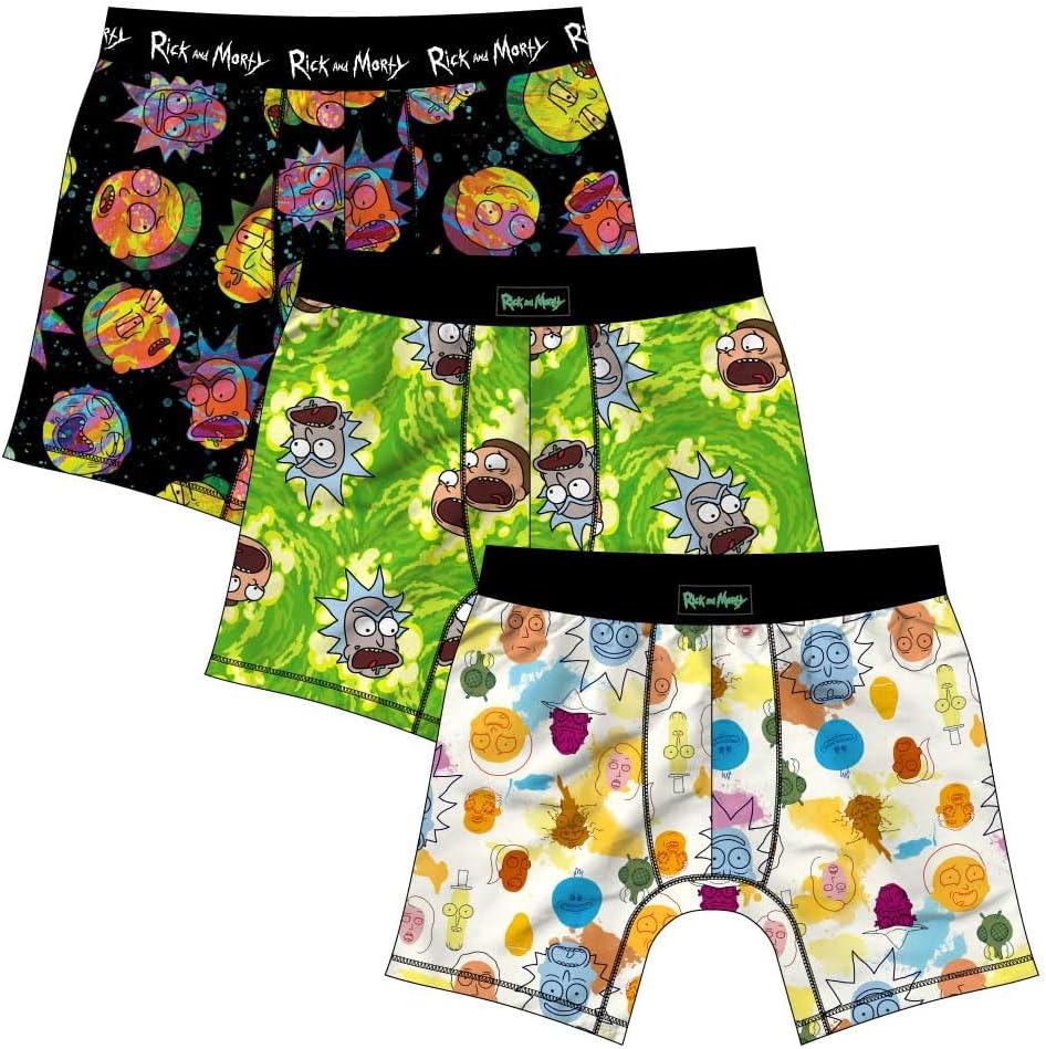 3-PACK: This fun pack of Rick & Morty boxer briefs includes three pairs of men's boxers, each featuring a brightly colored pattern of a favorite character or series motif.