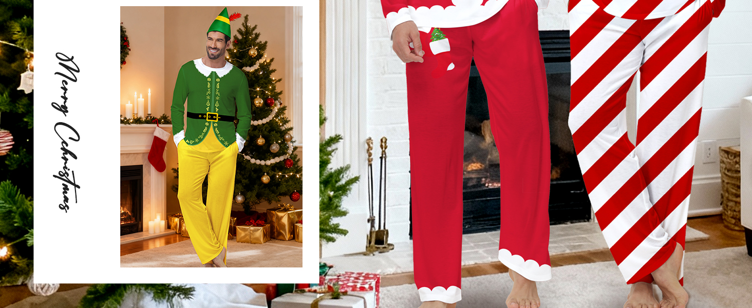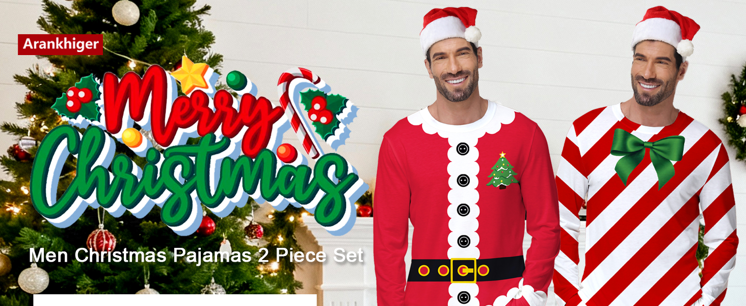 Men Christmas Pajamas Set Material: This 2 piece men's pajama set includes a long sleeve top and elastic-waist pants. Blended with 95% polyester and 5% spandex, the fabric is soft, cozy, and features excellent elasticity and wrinkle resistance for all day comfort