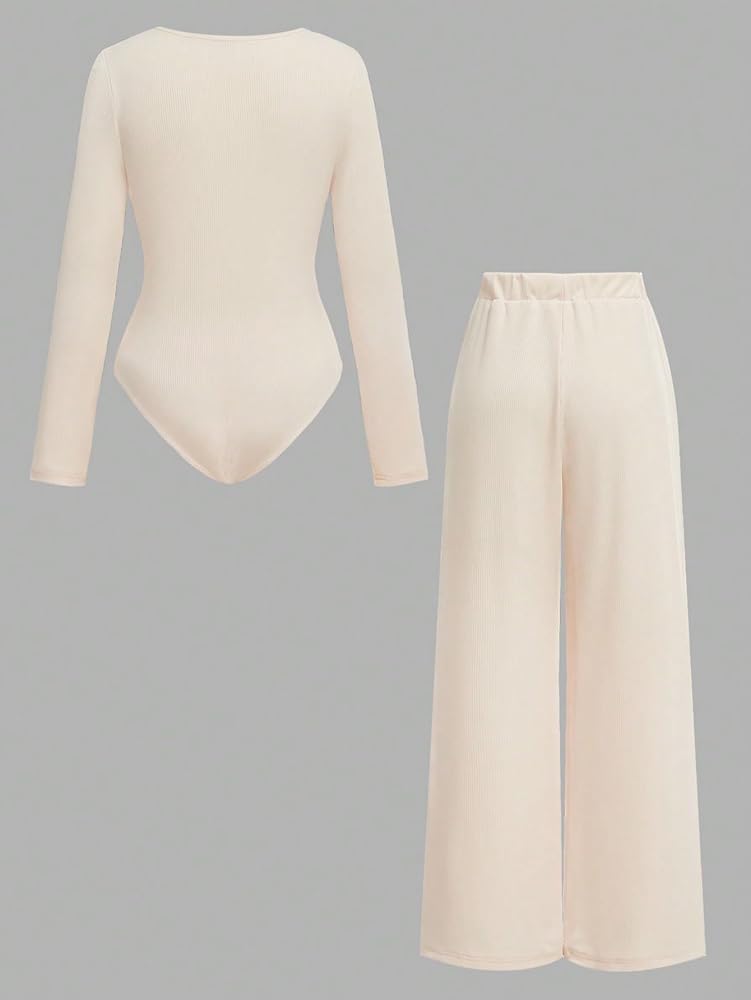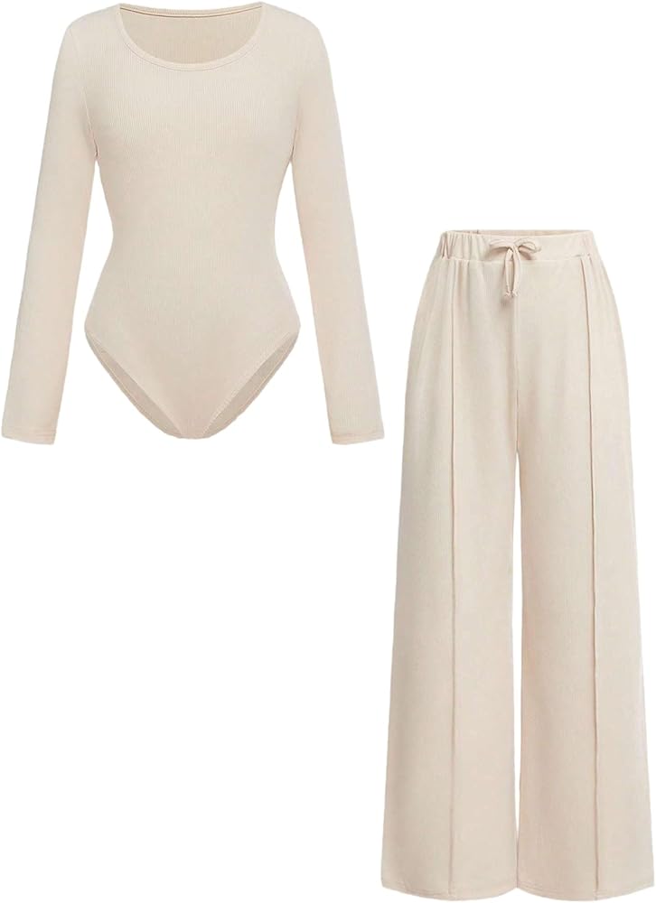• Feature: 2 Piece Set, round neck, long sleeve bodysuits, Button connection at the crotch of the coat,wide leg long pants set for girls