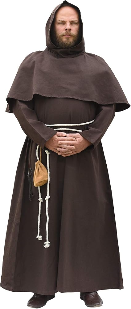 CHARACTERISTICS: The cowl is made from 100% cotton, and available in black and brown. The robe is full-length and long-sleeved. Characteristic features of the Franciscan friars' frock are the so-called cincture (a rope-like belt) tied around the waist and the shoulder and chest covering hood reminiscent of the gugel