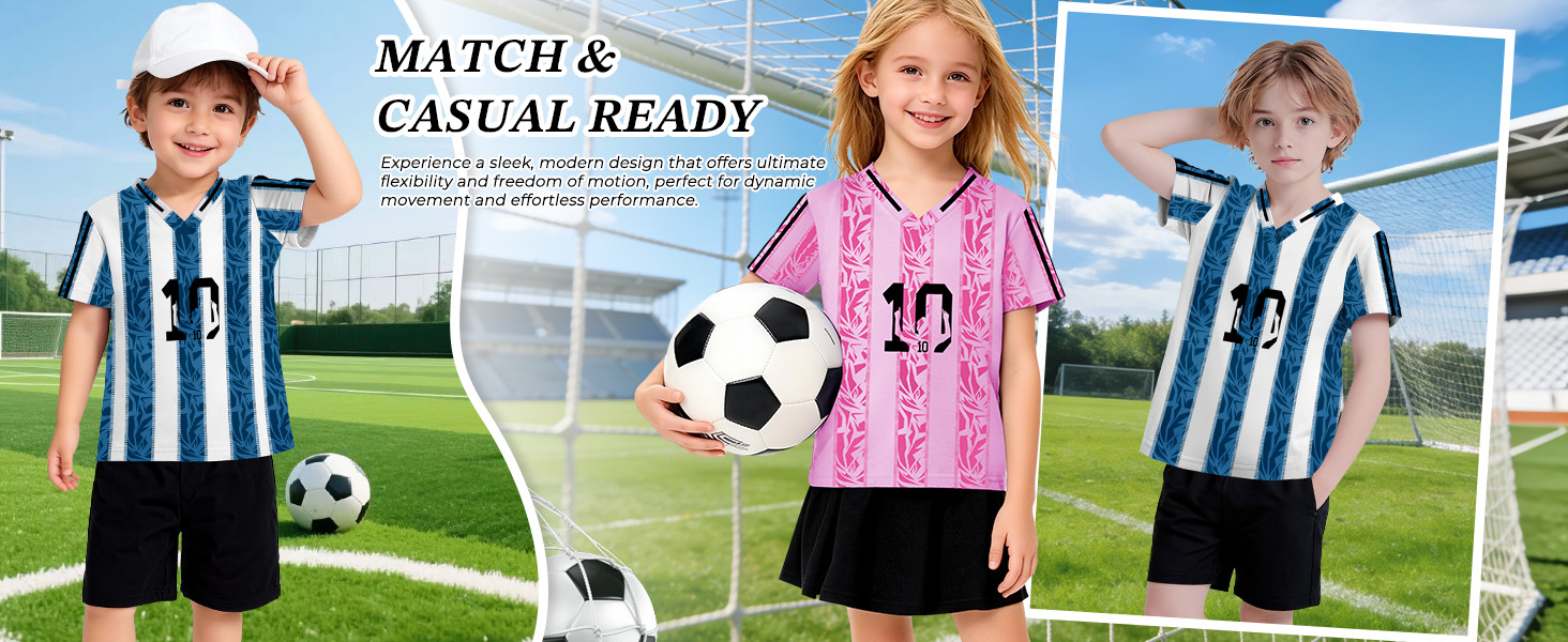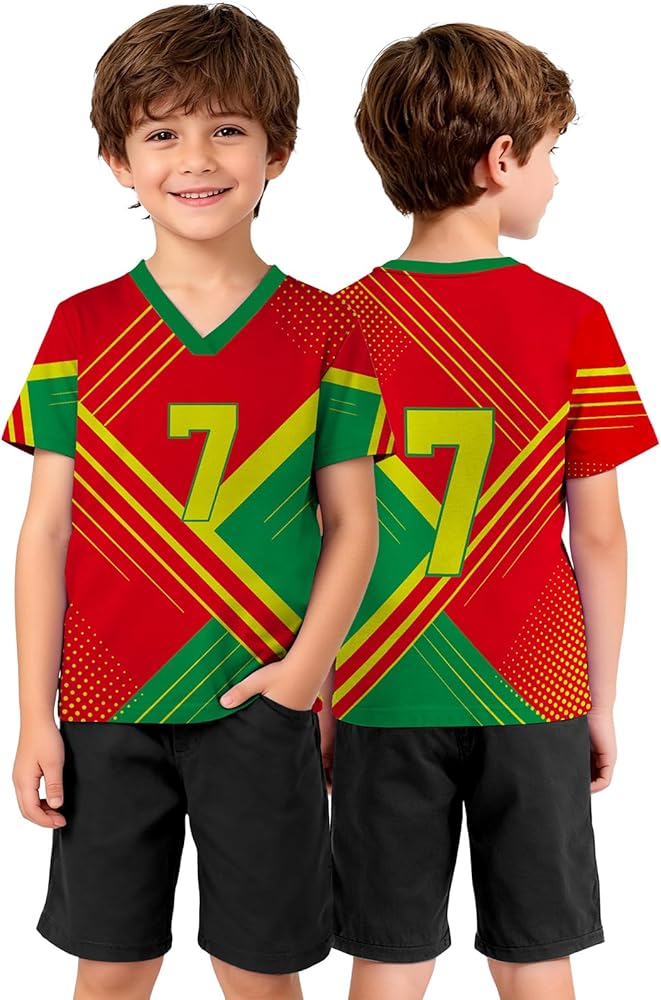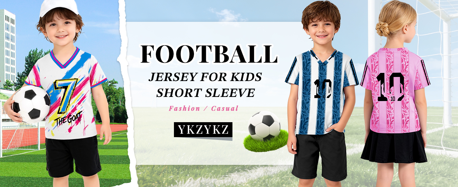 Feature: Soccer jersey kids, football jersey for kids, game day shirt, football jersey. Classic V Neck and short sleeves for a timeless, casual look.
