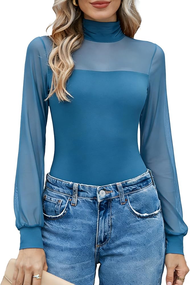 【Mesh &TurtleNeck】Turtle Neck and Mesh gives a more charming sexy look.Women bodysuits has snap closure on the crotch with 2 buttons, stable and makes it convenient. Gives you maximum freedom of taking on&off
