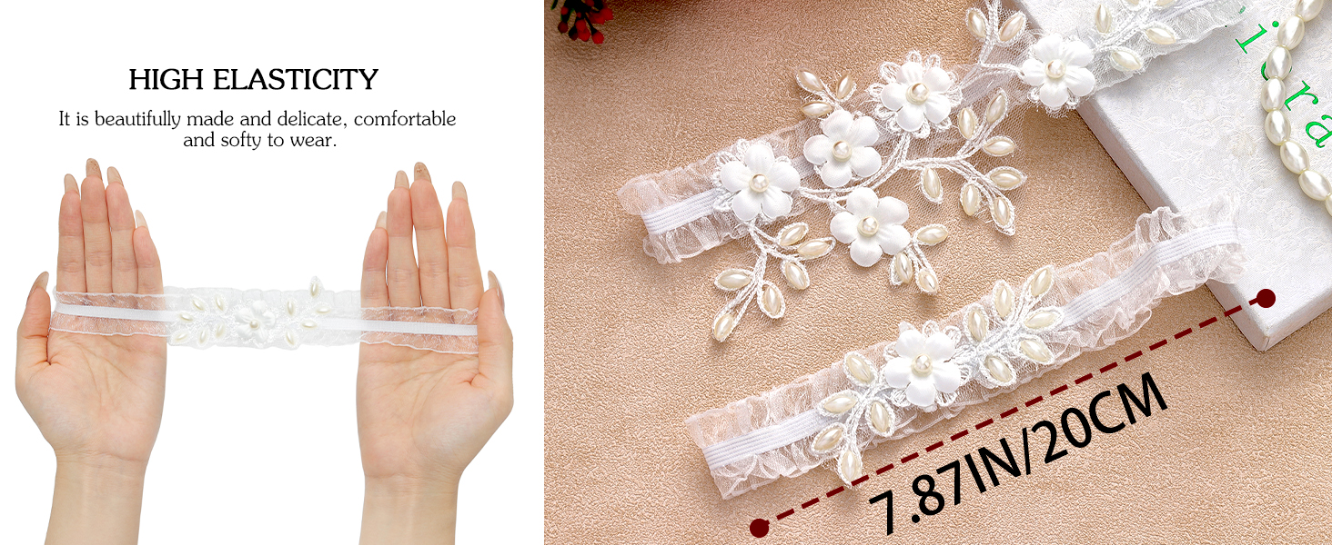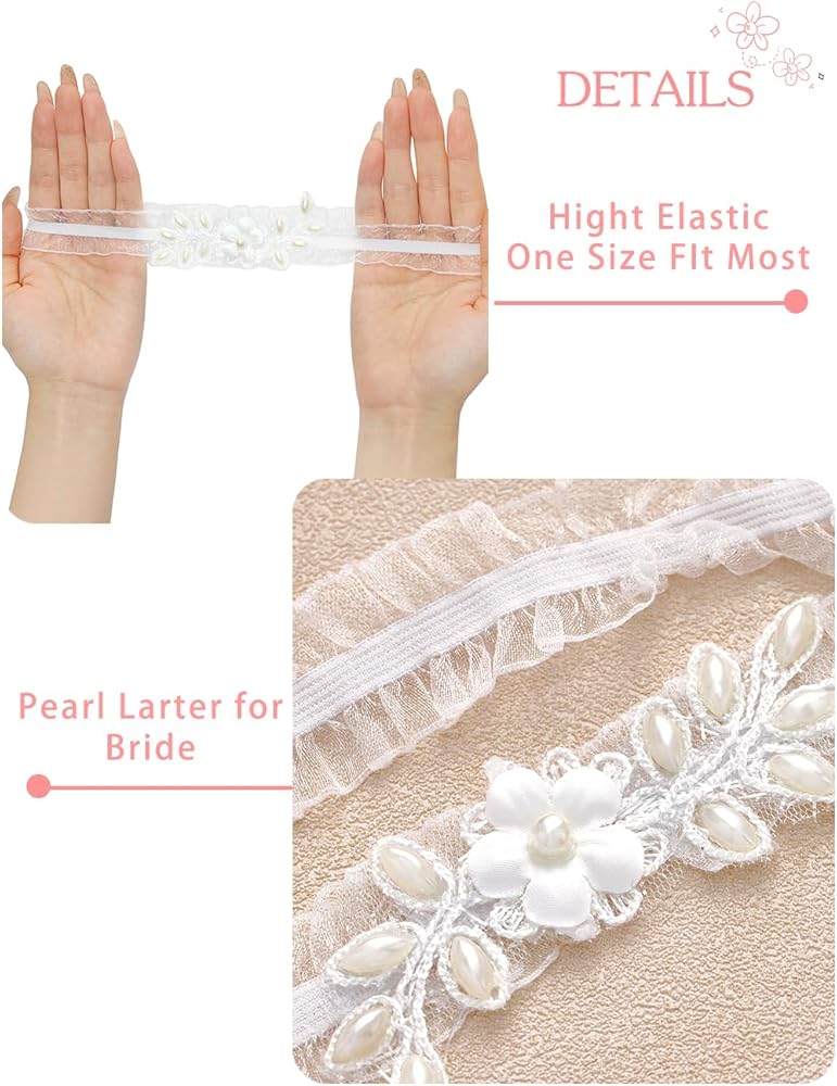 - White Pearl Garter Belt fits 15.7-23.6 inches leg circumference, bridal garters for bride elastic adjustment fits most girls and women