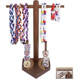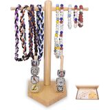 UNIQUE BASEBALL-INSPIRED DESIGN: Featuring a classic baseball-patterned base and bat-shaped posts, this organizer combines authentic sports charm with sturdy construction. It's designed to protect and proudly display your championship rings and drip necklaces in style. Please note: slight color variations may occur due to natural wood grain characteristics.