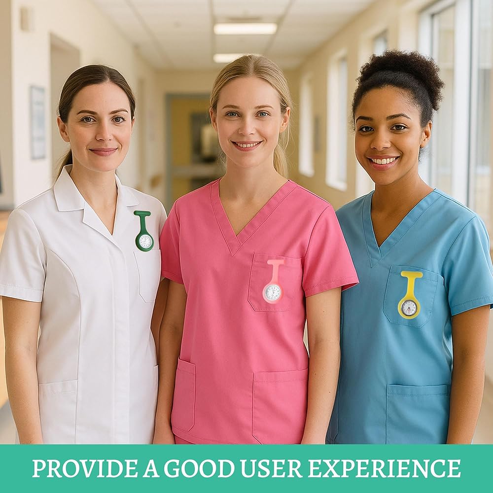 Practical System:Featuring silicone casing, these nurse watch clip on units provide soft, comfortable contact with secure pin attachments for pockets or stethoscopes. The watches for nurses prevent dial detachment during movement, while the watch necklace for women option offers reliable neck-worn accessibility throughout demanding shifts