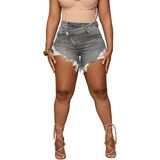 PINSV Women Summer Jean Shorts Hight Waisted with Ripped Hem