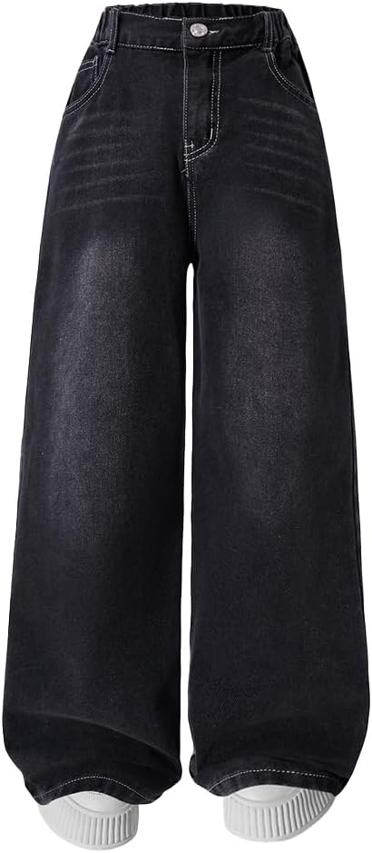 Stylish Baggy Fit: Designed with a loose fit and wide legs, these wide leg jeans feature an elastic waistband and zipper fly, offering the perfect combination of style and functionality for young boys.