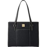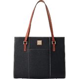Two outside pockets. One inside zip pocket. One inside pocket. Inside key hook. Strap drop length 10.5". Lined. Feet. Zipper closure. Dooney & Bourke Pebble Grain Charlotte Tote | Taupe
