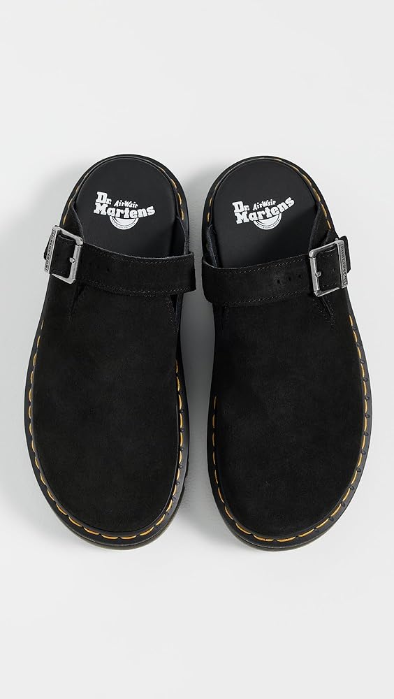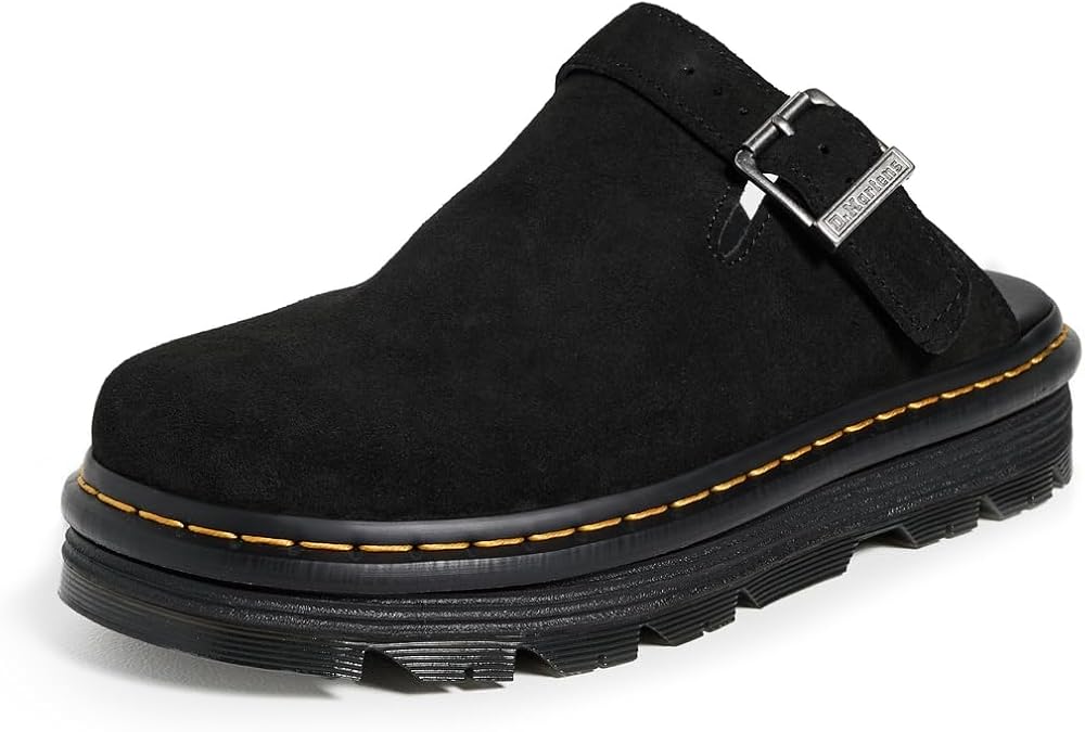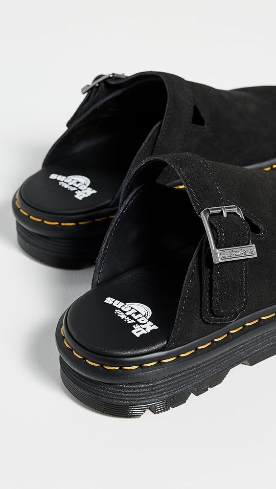 The Zebzag mule is our latest innovation in comfort: built on a hybrid air-cushioned sole that fuses feather-weight EVA with rugged PVC. Crafted from lightweight, versatile suede, they're designed to be worn however you feel like – in summer or out of the conventional season. The adjustable strap ensures a secure fit, while the welted construction delivers our signature durability. Yellow welt stitching marks the mules as Dr. Martens.