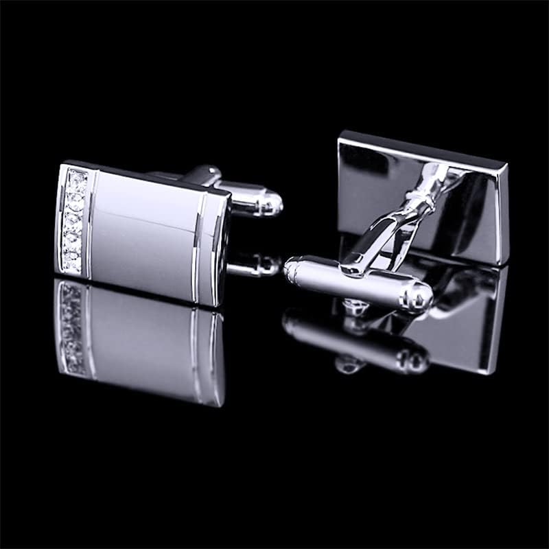 These sleek and stylish cufflinks are designed for the modern man who seeks elegance in every detail. Featuring a silver rectangular shape with crystal accents, these cufflinks are crafted from durable stainless steel, ensuring a long-lasting shine. Ideal for formal events such as weddings, business meetings, or evening parties, these cufflinks add a refined touch to any shirt. The combination of modern design and luxurious crystals makes them the perfect accessory for any sophisticated wardrobe.