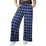 Acelitt Womens Casual Checkered Pants Elastic Waist Comfy Loose Wide Leg Pants with Pockets