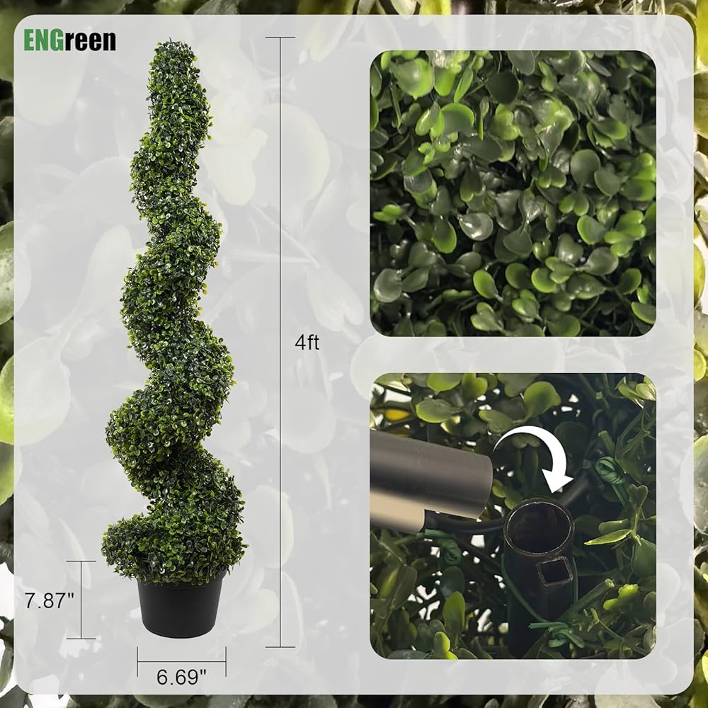 Year-Round Beauty with Safe Materials – Made of premium, non-toxic PE, these 4FT Spiral Topiaries maintain vibrant color and shape through all seasons, ideal for homes with children or pets.