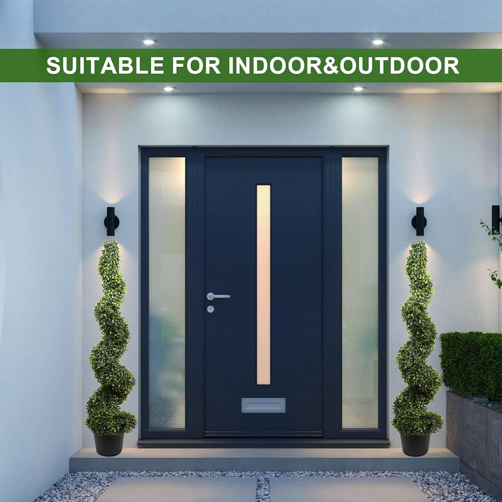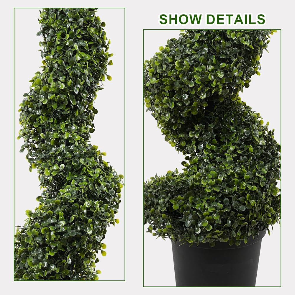 Lifelike Foliage with Natural Density – The staggered leaves on these Artificial Boxwood Spiral Topiary Trees create lush, realistic visuals for indoor/outdoor spaces. Dense foliage hides the inner frame seamlessly, requiring no watering, trimming, or upkeep.