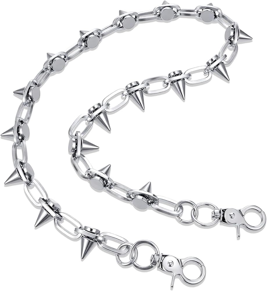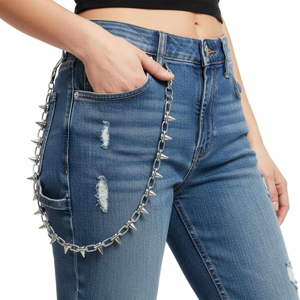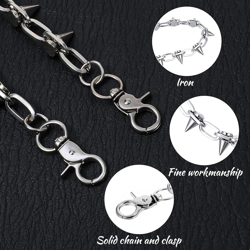 Rivet Pants Chain Hip Hop Punk Jeans Chains Goth Punk Silver-tone Spike Waist Chain Rock Belt Chains Body Jewelry Accessory for Women Men Cool Wallet Biker Keychain Trouser Christmas