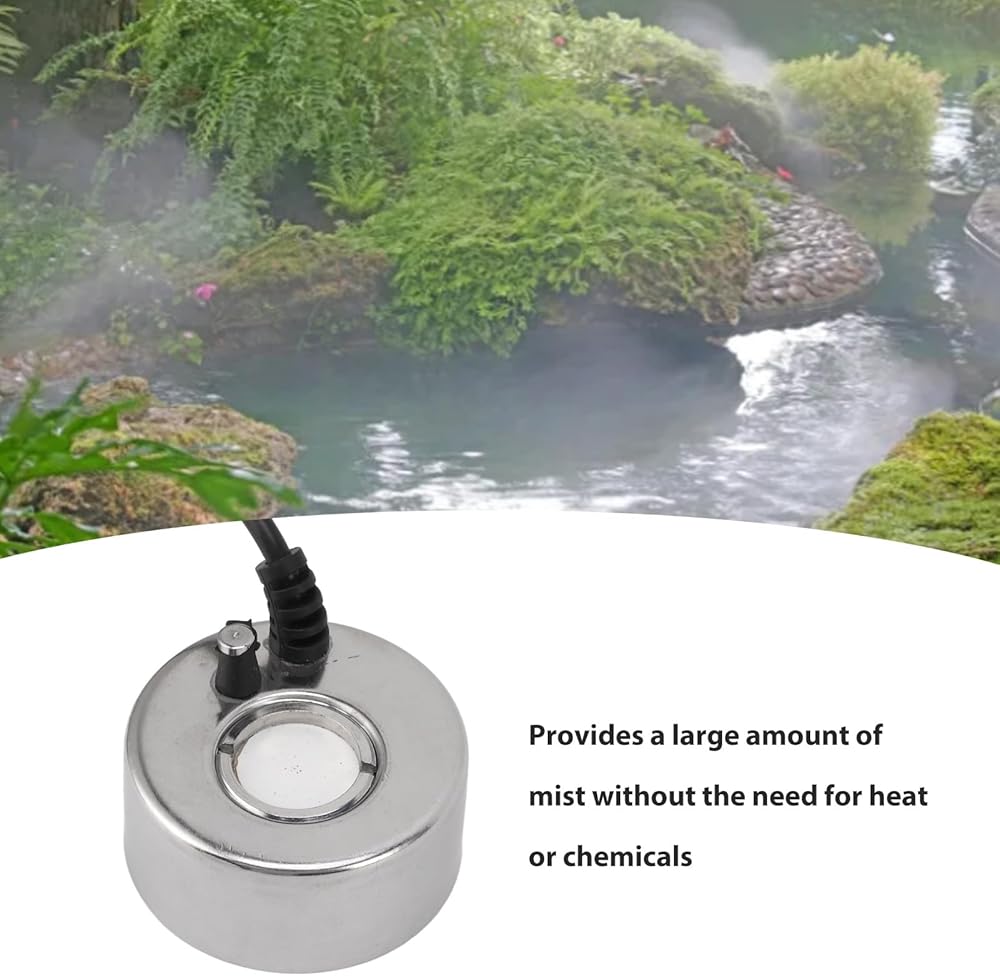 Ideal for Multiple Applications: The Mist Maker is versatile and can be used in fountains, fish tanks, ponds, vases, and more. mini fog machine efficiently adds a dense mist, enhancing the visual appeal of your decor. The ultrasound technology filters odors, making it a great choice for aquariums and garden water features.