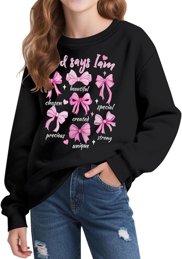 - Design: Girls graphic sweatshirt pullover ctue shirt features long sleeve, crewneck, cute print, making your kids fashion and cuter.
