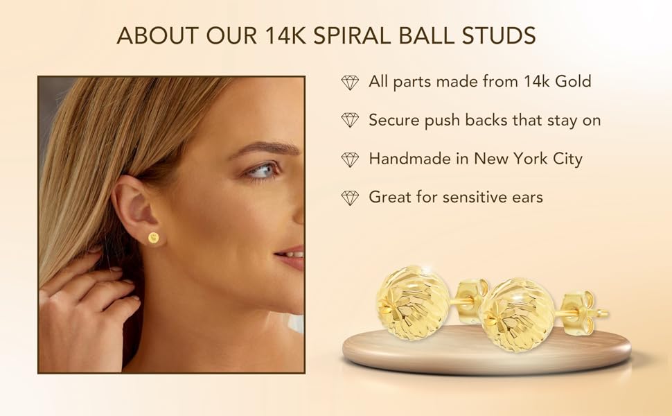 MADE IN USA ✦ Skin friendly, and comfortable for all day wear. Will not change color or tarnish. ✦ Comes with a secure 14k Gold butterfly pushback that can be adjusted to your ear thickness for a perfect fit.