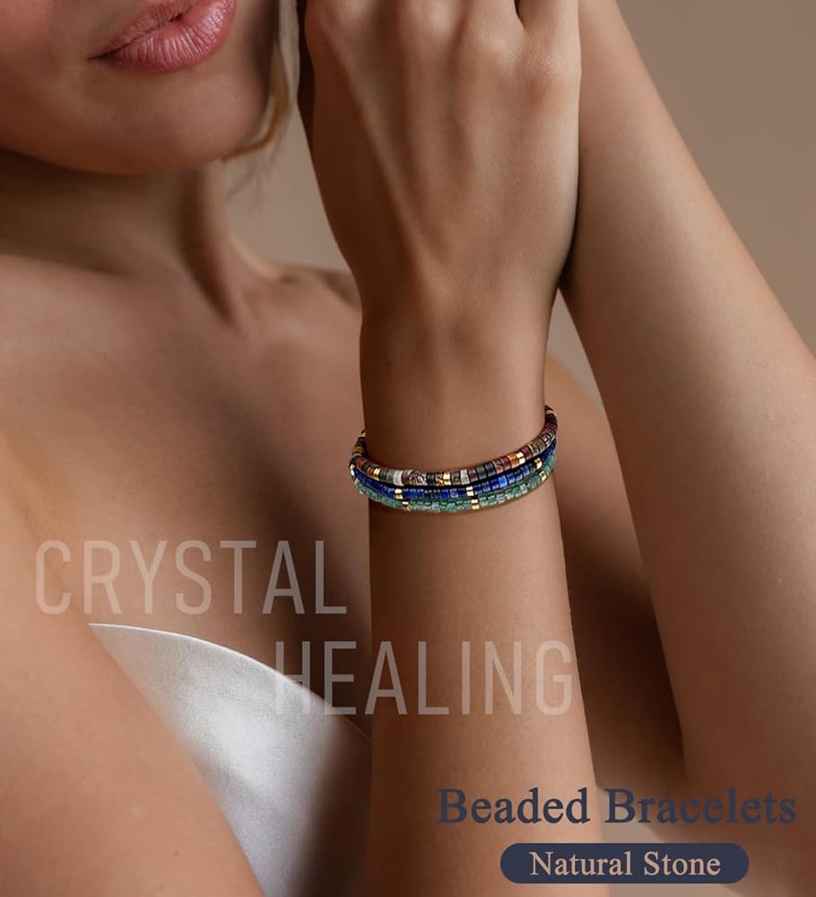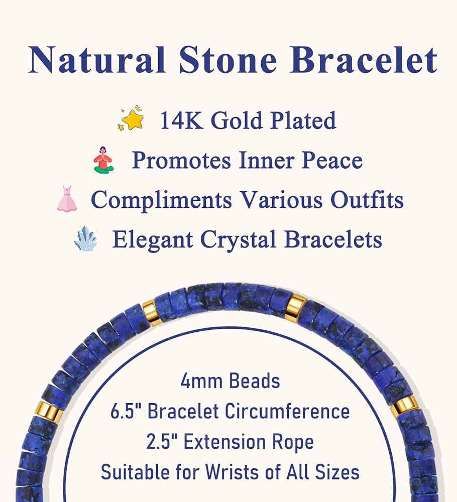 Gemstone Bracelets:The beads are made of 4mm natural healing stones, which is hypoallergenic, lead free, nickel free will never change color or turn green;Looks just as beautiful with jeans and a t-shirt as it does with a dressy attire, comfortable for everyday wear