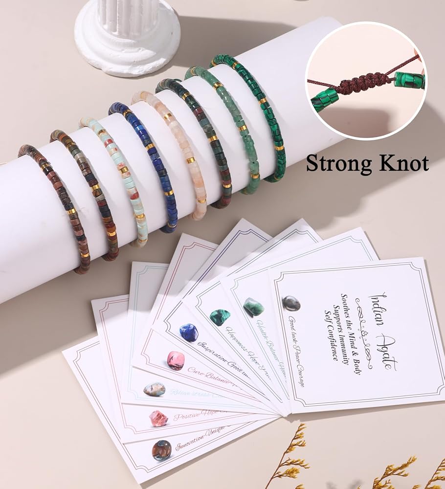 Inspirational Bracelets for Women:You will receive 8pcs protective stones bracelet, 8pcs meaningful cards;Fit for Mother's Day, graduation, birthday, Valentine's Day, Thanksgiving, Christmas, anniversary, thank you gifts, get well gifts for women after surgery, sympathy gifts, mental health gifts, spiritual gifts for women and more!