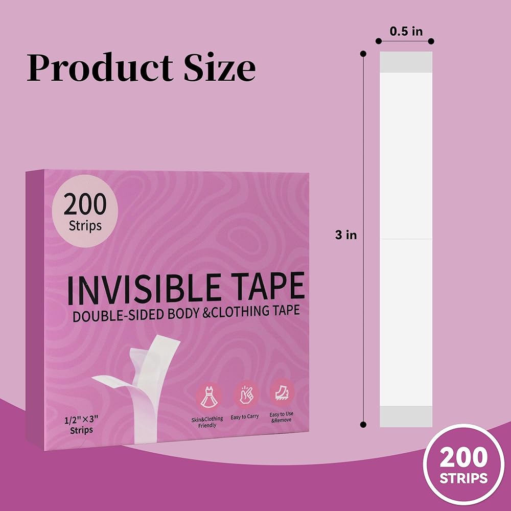 200 Strips Fashion Double Sided Tape for Clothes - Hypoallergenic Dress Tape Fabric to Skin,Skin-Friendly Body Tape & Clothing Tape for All-Day Invisible Hold