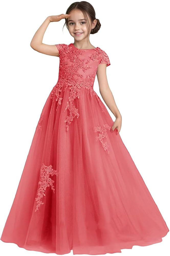 Features: This flower girl dress is made of tulle and satin. The tulle is decorated with lace applique, and the lower body is designed with tulle fabric, making it an elegant princess party and children's beauty pageant dress