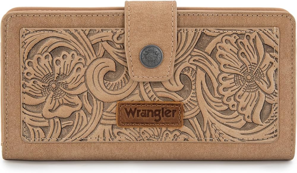 Wrangler woman wallet features exquisite tooling flower design. Blending western and elegant styles, which complements your outfits perfectly.