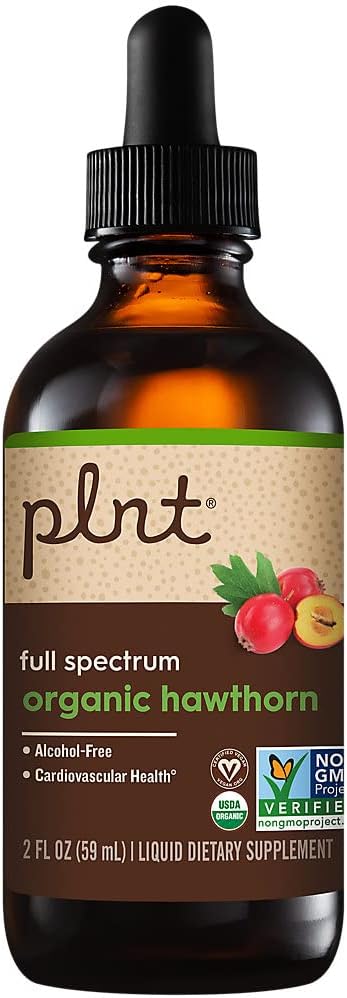Supports cardiovascular health Certified Vegan and Certified USDA Organic Non-GMO Project Verified Kosher Free of alcohol, gluten, dairy, soy, and nuts Show your heart some all-natural love with Organic Liquid Hawthorn. Hawthorn is a flowering shrub that grows tiny, tart, nutrient-dense berries packed with heart-healthy antioxidants that support cardiovascular and circulatory health. All plntA products are made from whole food or plant-based ingredients sourced in nature, contain zero synthetic colors, sweeteners, or flavors, and are always tested to ensure purity and potency.