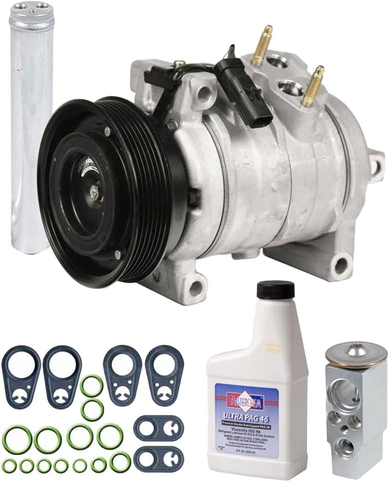 Included in this kit: 100% BRAND NEW, GENUINE Original Equipment A/C compressor with clutch ; New accumulator / receiver drier / desiccant ; New expansion device ; Complete vehicle-specific o-ring seal kit ; correct viscosity PAG oil. Please note: for use only in motor vehicle air conditioner (MVAC) systems. Use in a 20-ounce self-sealing container.