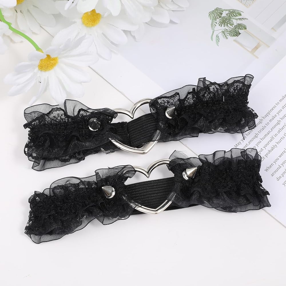 【Durability Material】Crafted from lace and elastic, these black thigh garters are soft, durability and comfortable. The lace edges are meticulously stitched, ensuring longevity, while the heart buckle adds a touch of elegance without fading.
