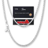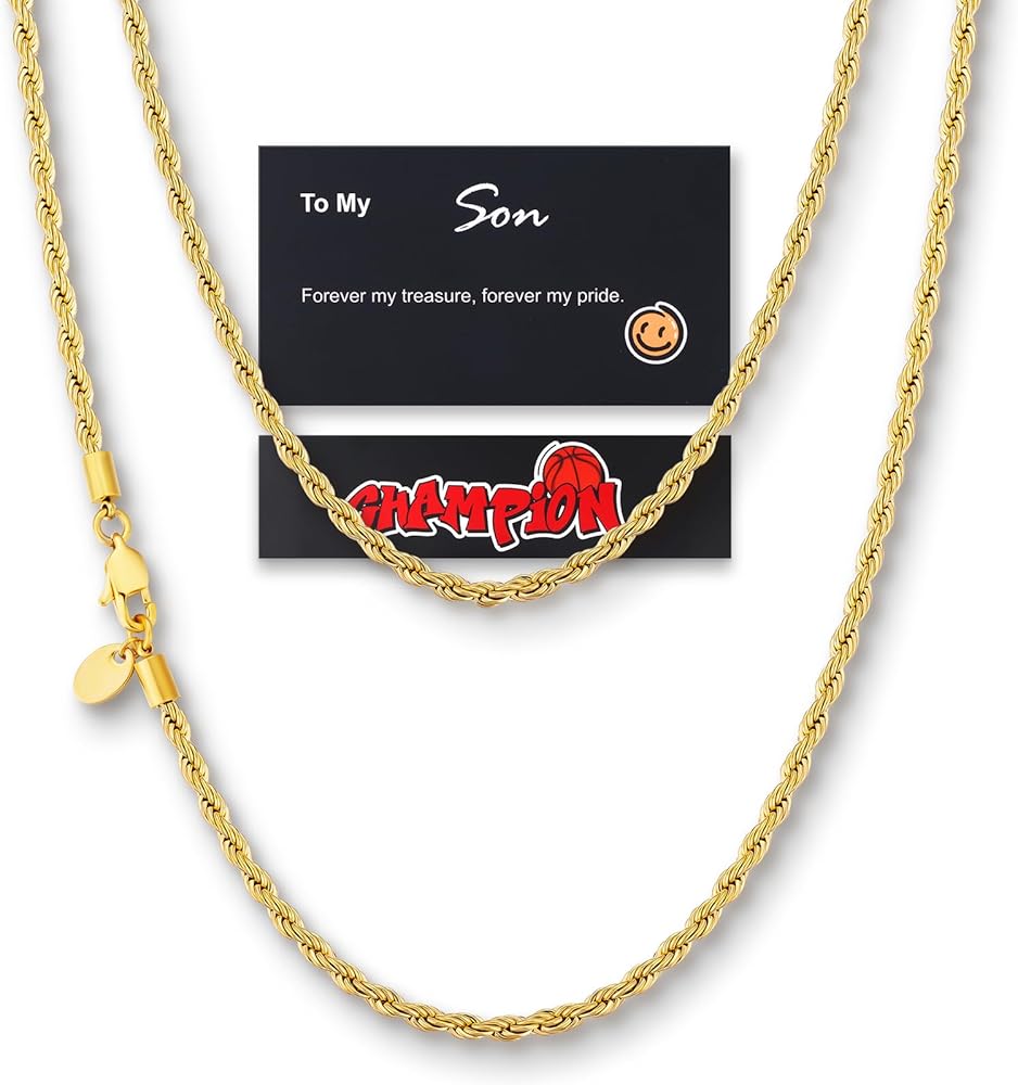 [Timeless & Minimalist Style] Choose the perfect length (16"-26") and classic width 3mm for him, and it'll still fit years from now, or from school to practice, it fits right in. A tasteful touch he can wear anywhere. And the rope chain is versatile, adult-looking design he won't want to take off. He can wear alone the chain, or layer it with a pendant/other necklaces.