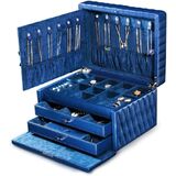 Durable Construction & Secure Closure: Made from high-quality microfabric leather with sturdy construction, this jewelry box features a convenient carry handle for portability and smooth push-button latches to keep your valuables safely stored and organized.Perfect for home use or travel.