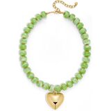Trendy Chunky Heart Necklace: Make a statement with this eye-catching green chunky heart necklace. The vibrant green acrylic resin beads paired with a luxurious gold puffy heart pendant create a unique and trendy look