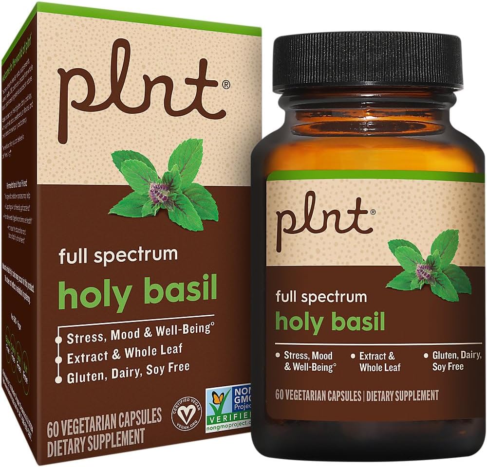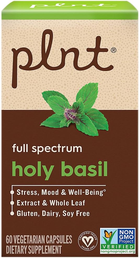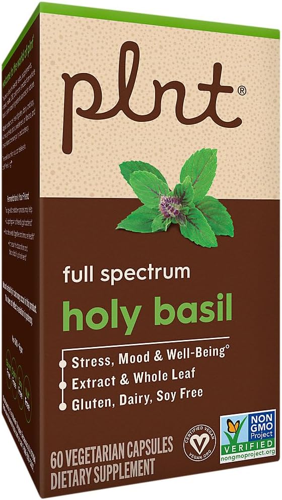 Supports stress, mood, and wellbeing Certified Vegan Non-GMO Project Verified Kosher Free of gluten, dairy, soy, and nuts Holy Basil does a bit more than the average basil. Also known as tulsi, holy basil is an antioxidant-packed adaptogen that supports stress management, a positive mood, and your overall wellbeing. All plntA products are made from whole food or plant-based ingredients sourced in nature, contain zero synthetic colors, sweeteners, or flavors, and are always tested to ensure purity and potency. Frequently Asked Questions WhataTMs an adaptogen? An adaptogen is a substance thataTMs believed to help the body adapt to stress.
