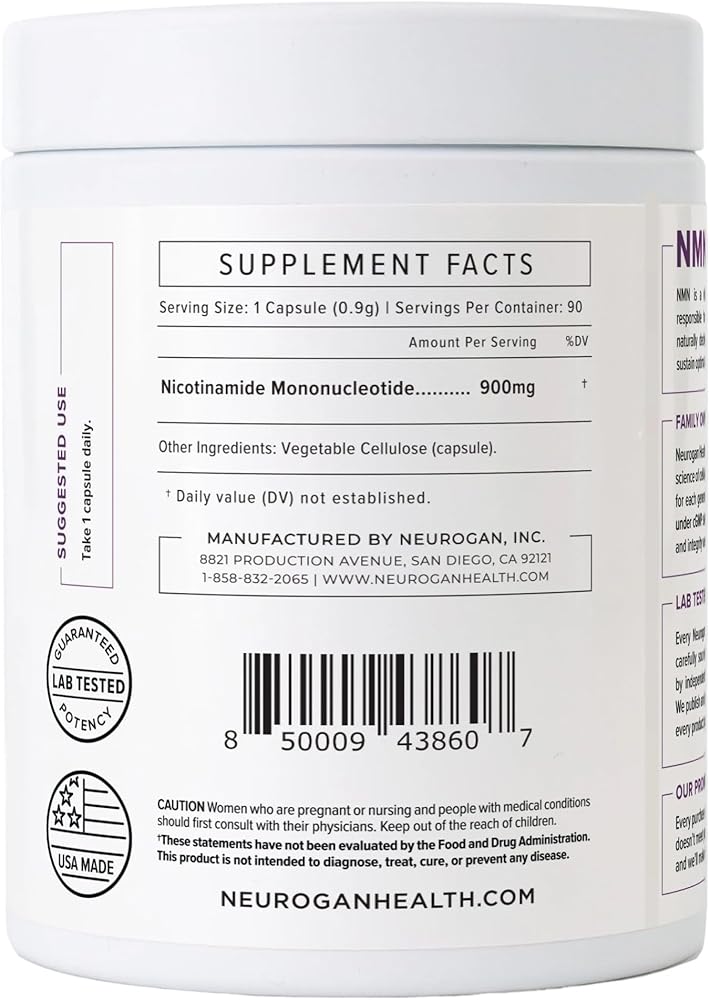 Neurogan Beta NMN (β-NMN) Supplement – 900 mg per Serving, 99.6% Purity – NAD+ Precursor for Cellular Energy & Vitality – 90 Capsules (3-Month Supply) – Made in USA