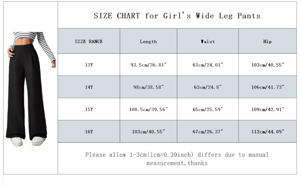 Girl's Pants Dress Pants Wide Leg Pants Elastic High Waisted Loose Long Trousers with Pockets Pleated for 13-16Y