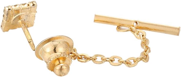 Rockyu's men's lapel pin showcases a glamorous gold-tone finish with a square-shaped rhinestone setting and elegant chain detail. Designed to elevate tuxedos and suits, this pin is ideal for weddings, formal galas, or as a luxurious gift for grooms and stylish men. Keywords: gold lapel pin, men's suit brooch, groom chain accessory, rhinestone pin, square crystal brooch, formal chain pin, wedding accessory, tuxedo jewelry, men's fashion pin, groomsmen gift.